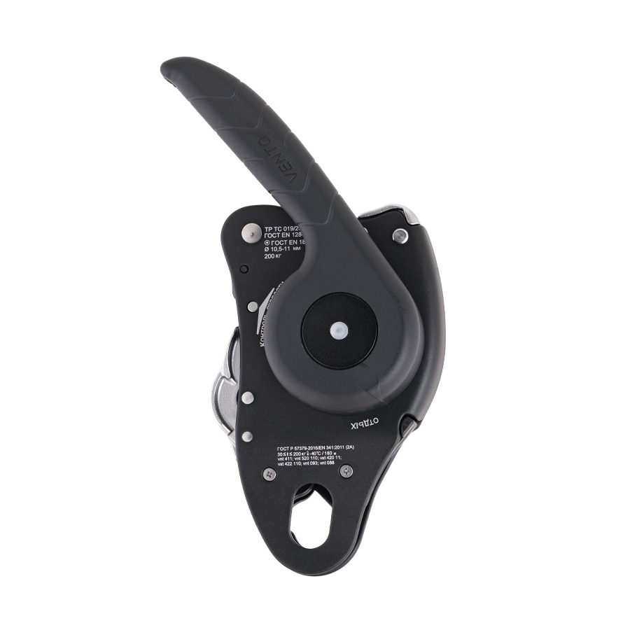 Поворотная верхняя крышка позволяет заправлять канат, не снимая устройство с привязи или анкерного устройства.Характеристики