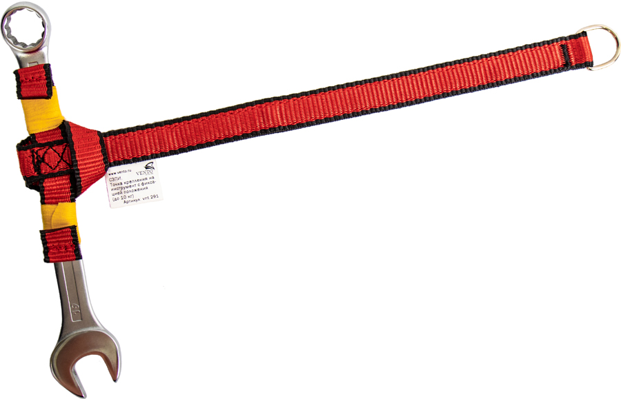 Точка крепления для габаритного инструмента. Конструкция позволяет закрепить точку при помощи полусхватывающего узла и зафиксировать за усы при помощи клейкой ленты.