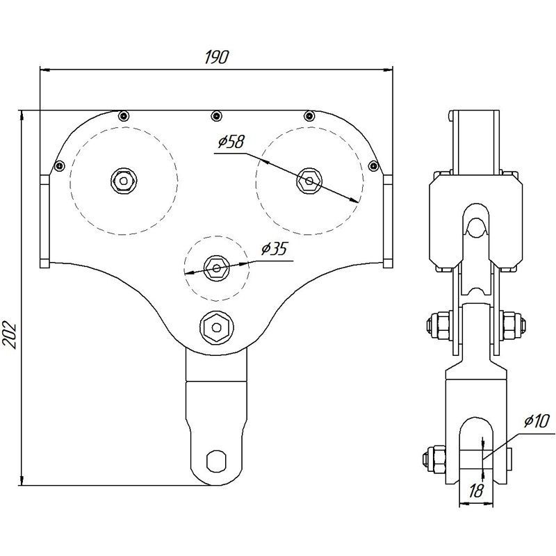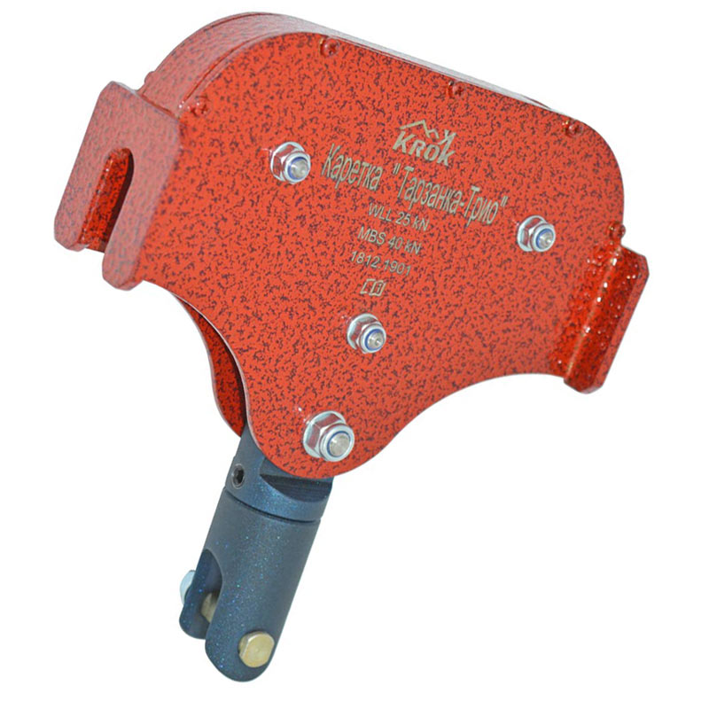 Тандем-каретка оборудована стальными роликами с высокими ребордами для долговременного использования с канатами от 8 до 10,5 мм .