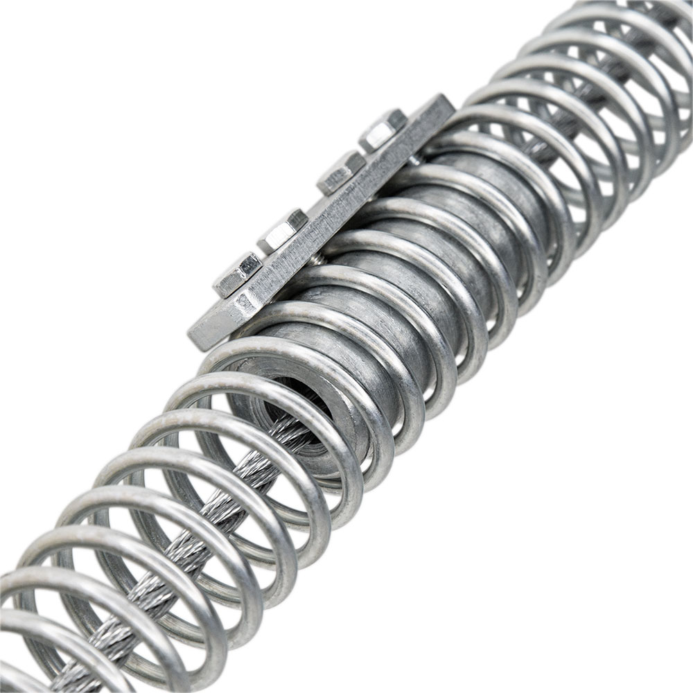Соединители, фиксирующая конечная заглушка, демпферная заглушка и пружины устанавливаются на трос до его фиксации за конечную анкерную точку.
