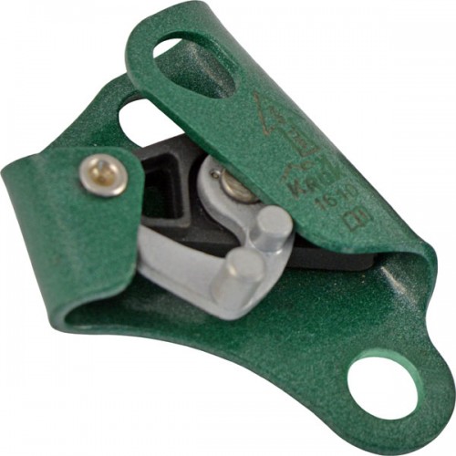 - Крючок-фиксатор кулачка имеет дополнительную упорную бонку для облегчённого открывания застрявшего кулачка-прижима «из-под узла» — т. е. когда корпус зажима упёрся в узел, а прижим «закусил» верёвку.