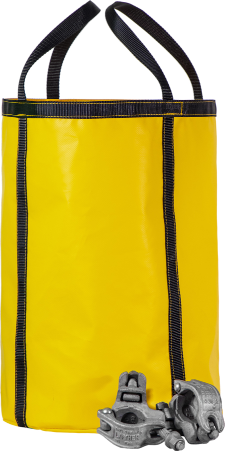 Сумка в форме «ведра» из износостойкого материала предназначена для транспортировки хомутов при монтаже/демонтаже строительных работ.