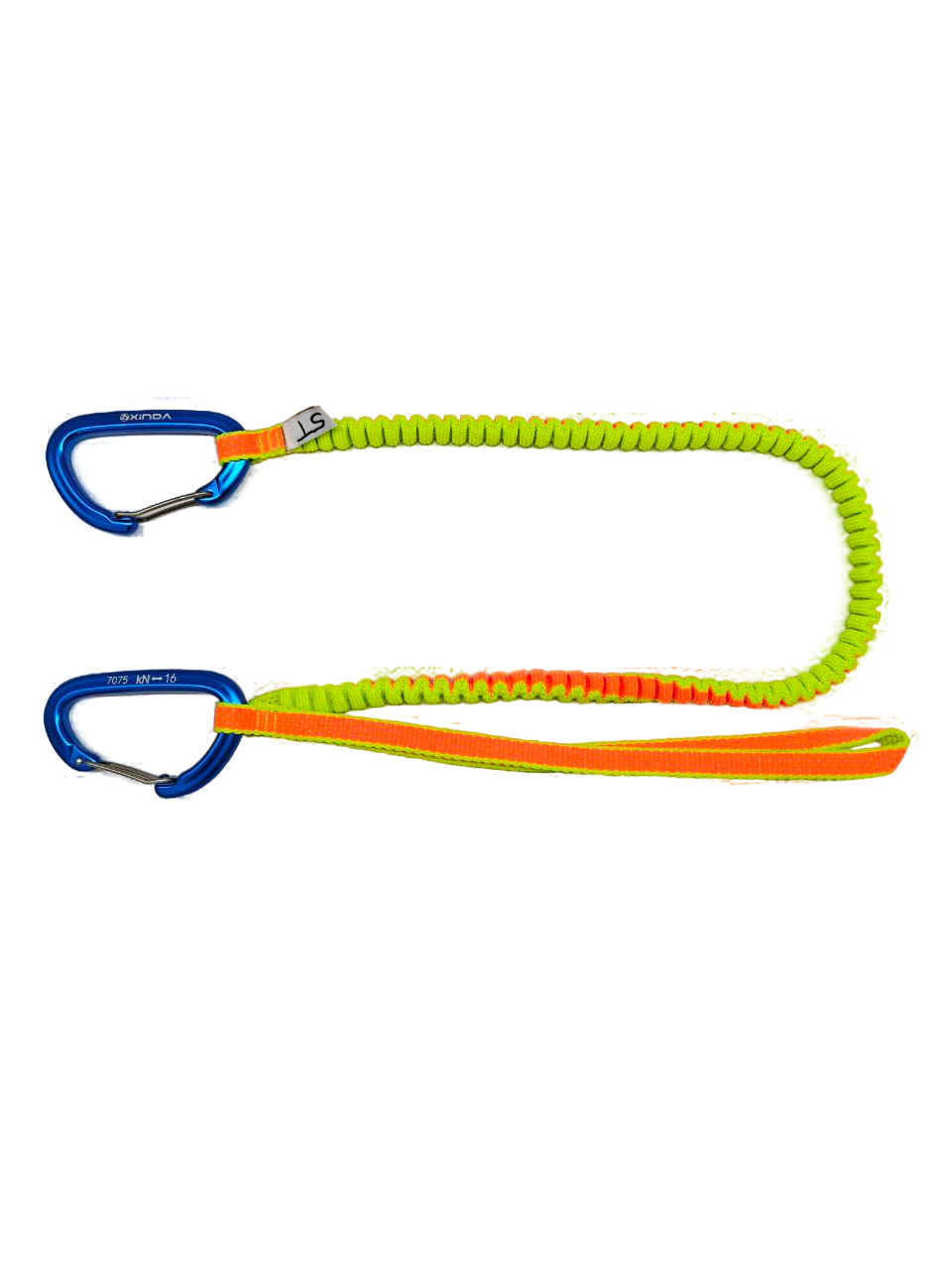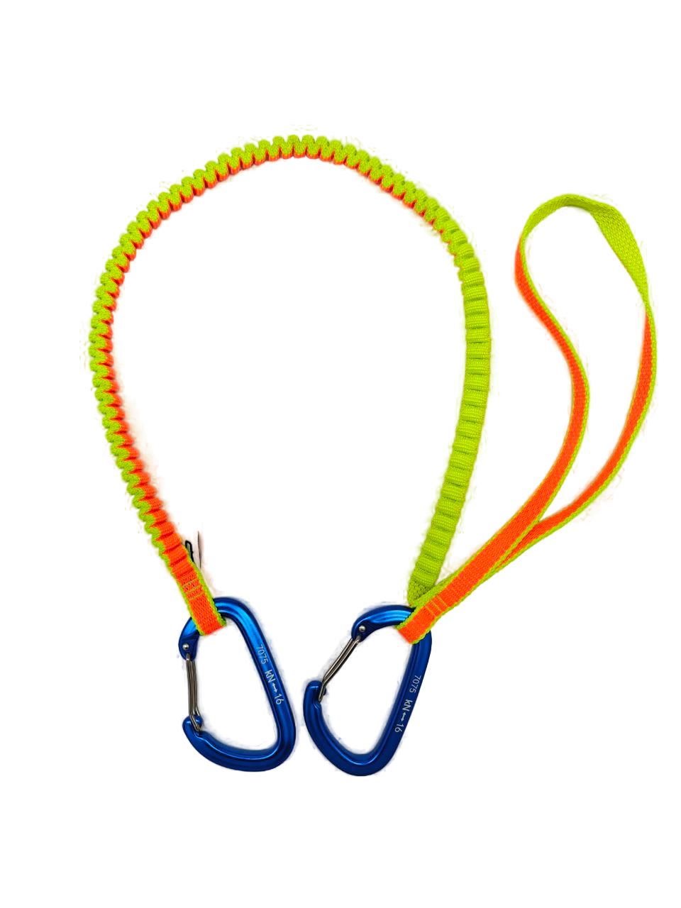 Один конец страховки имеет маленькую петлю для фиксации на карабине с диаметром до 10-11мм.