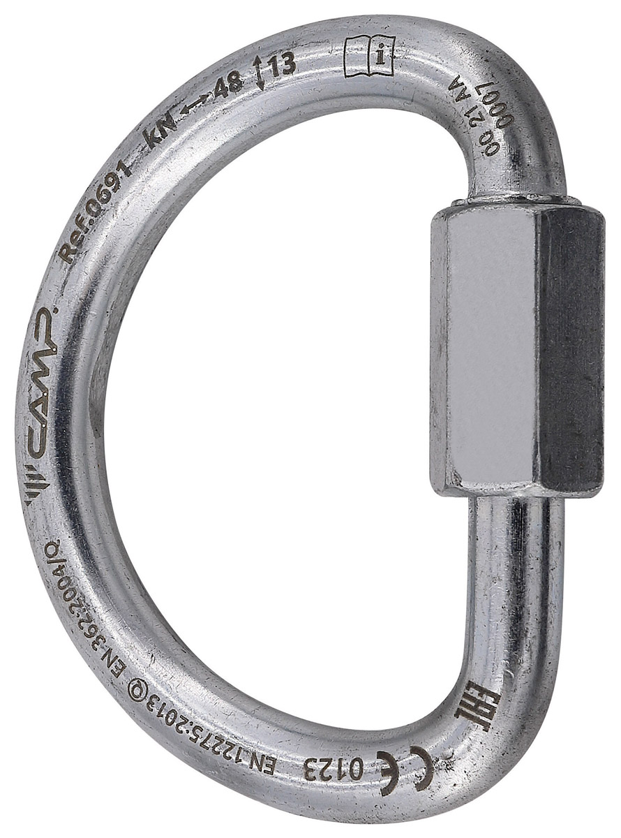 Соединительный элемент (карабин-рапид) D-образной формы из оцинкованной стали, имеющий сертификат CE, UIAA и ЕАС, отлично подходит для работы с веревкой, различных типов соединений и использования в промышленном альпинизме. Для открытия карабина вам потребуется ключ на 17 мм.