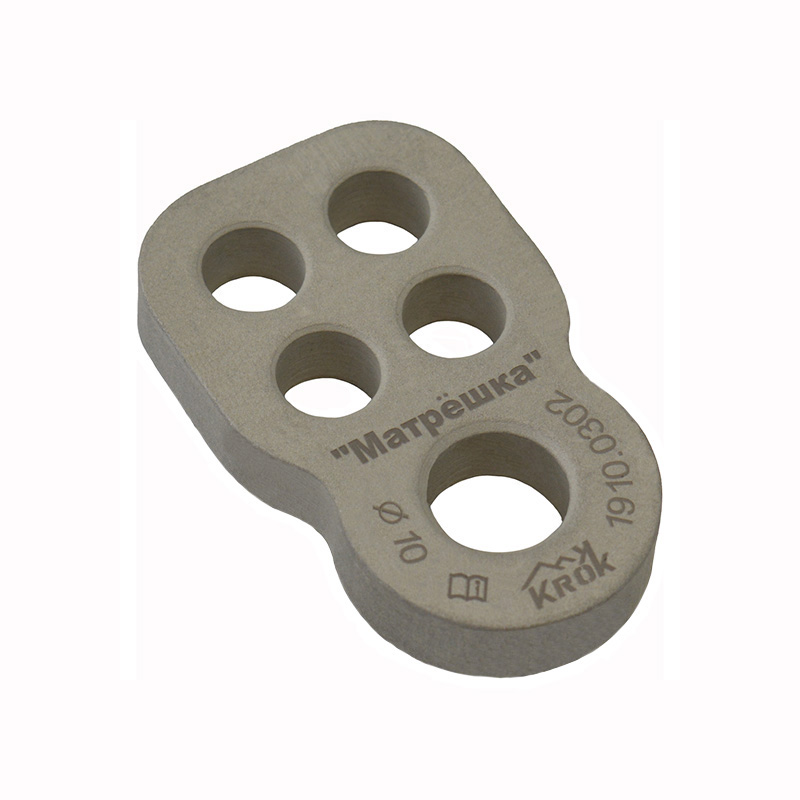 Фрикционная пластина «Матрёшка» крепится к точке присоединения соединительным карабином или продетой сквозь присоединительное отверстие соединительной петлёй узлом «удавка».